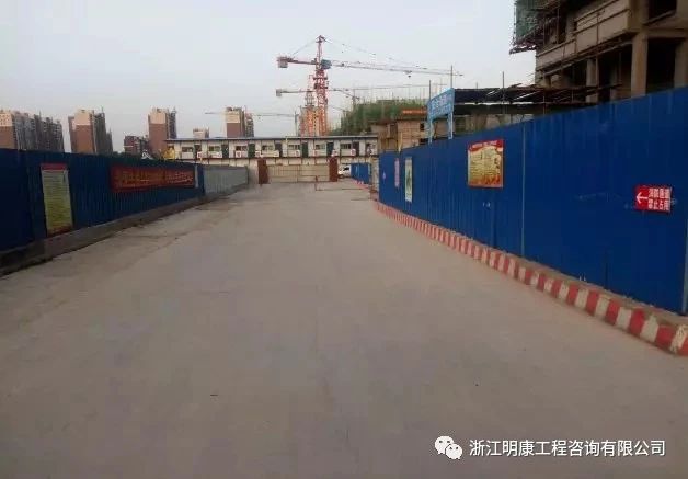 3、場地寬度應滿足消防車正常操作要求且不應小于6m,與在建工程外腳手架的凈距不宜小于2m,且不宜超過6m。