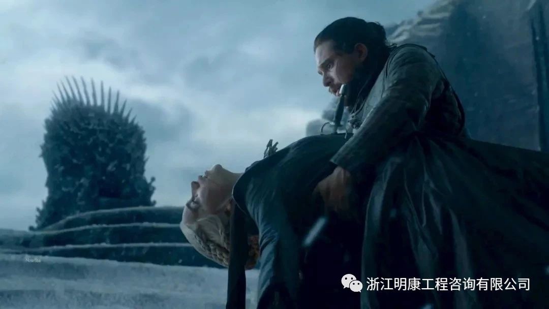 丹妮莉絲在鐵王座前被雪諾刺殺而亡