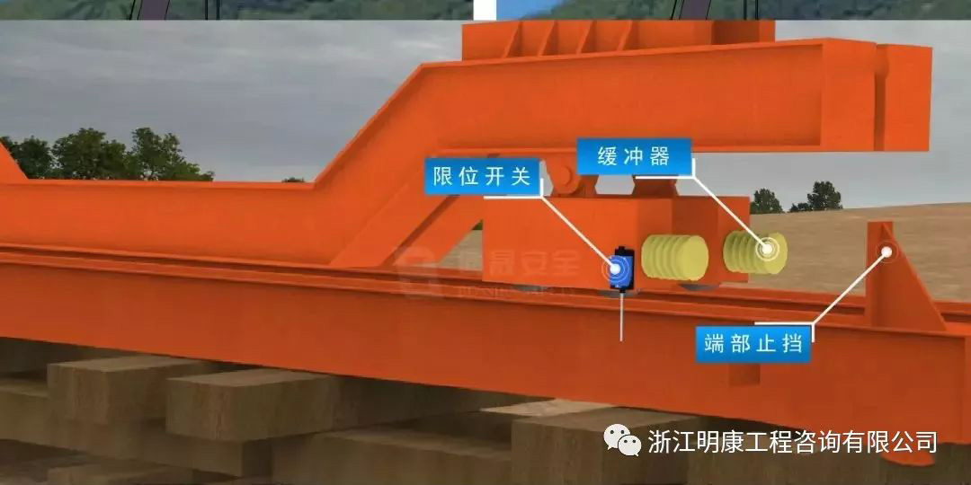 9、架橋機必須設置有效的限位裝置,在軌道有效行程范圍內設置緩沖器及端部止擋。