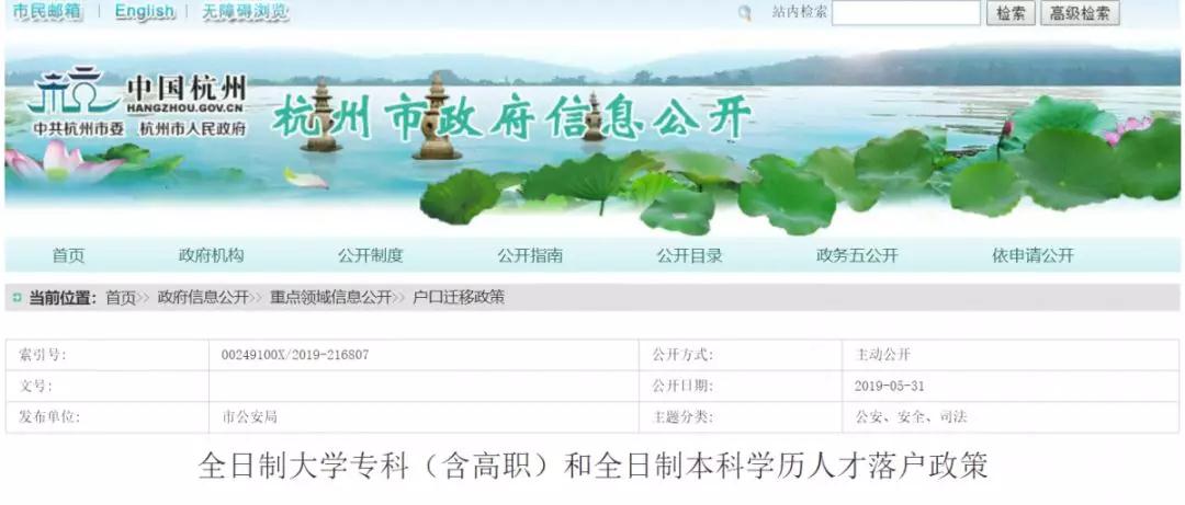 落戶貼士 | 全日制大專、本科人才落戶杭州落戶細則來了!發布日期:2019-06-05