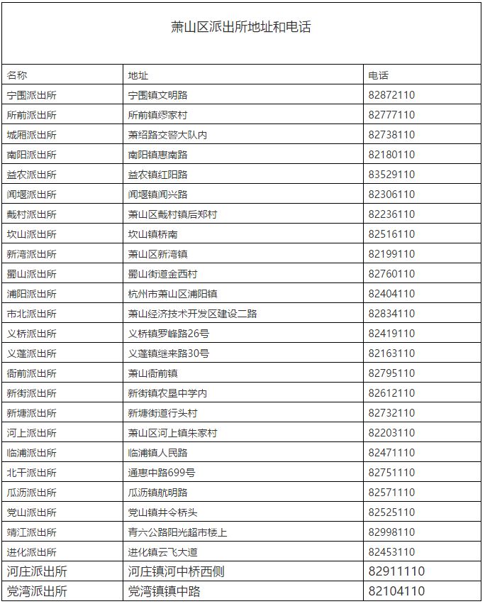 附:派出所電話和地址