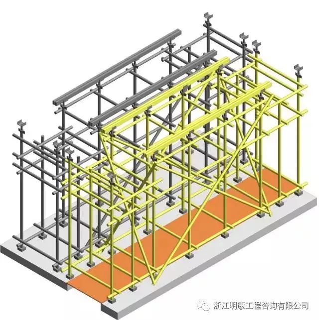 2、立桿上應每步設置雙向水平桿,水平桿應與立桿扣接。