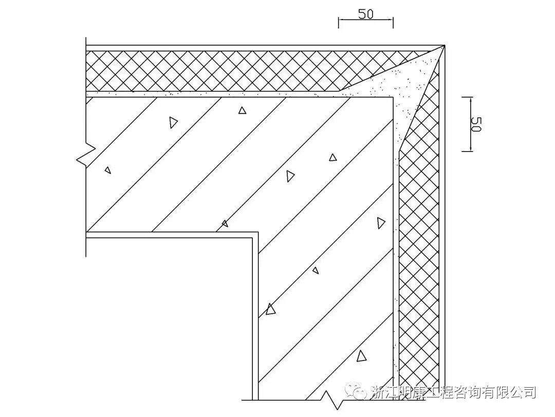 (3)細部處理。外墻抹灰工程施工前應先安裝門窗框、護欄等,并應將施工孔洞堵塞密實。室內墻面、柱面和門洞口的陽角做法應符合設計要求。設計無要求時,應采用1:2水泥砂漿做暗護角,其高度不應低于2m,每側寬度不應小于50mm。