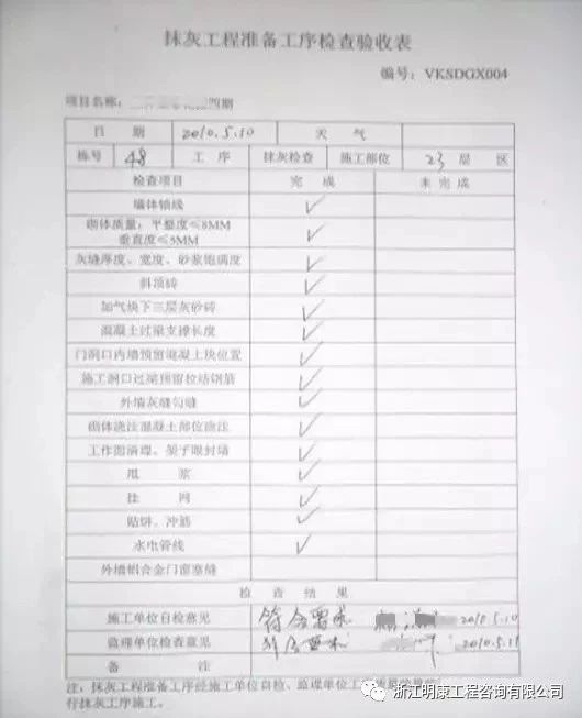 抹灰前應辦理準備工序檢查驗收手續,并存檔驗收資料。