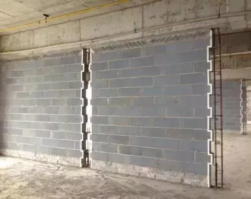 砌塊墻體的轉角處和交接處應同時砌筑,嚴禁無可靠措施的內外墻分砌施工;對不能同時砌筑而且必須留置的臨時間斷處應砌成斜槎,斜槎水平投影長度不得小于高度的 2/3。臨時間斷處補砌時應將接槎處灰漿及雜物清理干凈,澆水濕潤,并用砂漿填實保持灰縫順直。