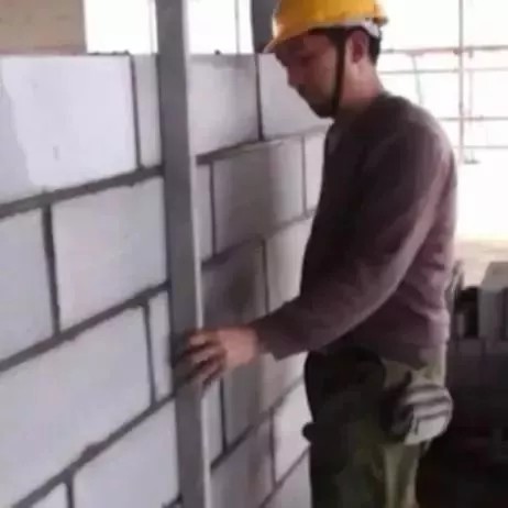根據砌塊模數和砌塊選用規格尺寸,在第一皮磚砌筑時應試擺,按墻段實量尺寸和砌塊規格尺寸進行排列擺塊,當砌筑時遇到非整塊加氣混凝土砌塊時,必須使用手提電鋸和板鋸切割所需尺寸砌塊。嚴禁用斧子、瓦刀等任意劈砍。