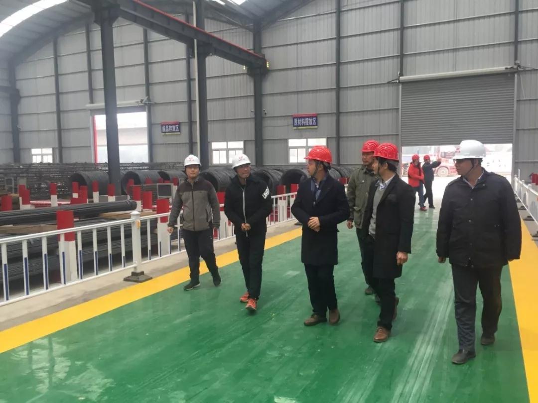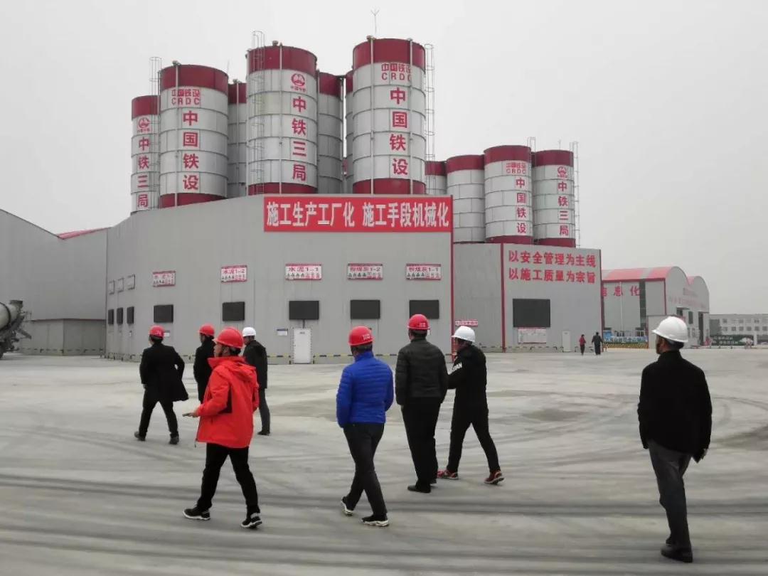 由中鐵三局二分部項(xiàng)目部副經(jīng)理等一行陪同翁總參觀鋼筋加工廠及混凝土拌合站。