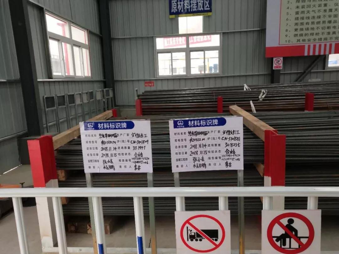 料場(chǎng)材料一目了然、分類清晰,未檢和已檢區(qū)分明晰且容量及標(biāo)識(shí)標(biāo)牌內(nèi)容清晰。