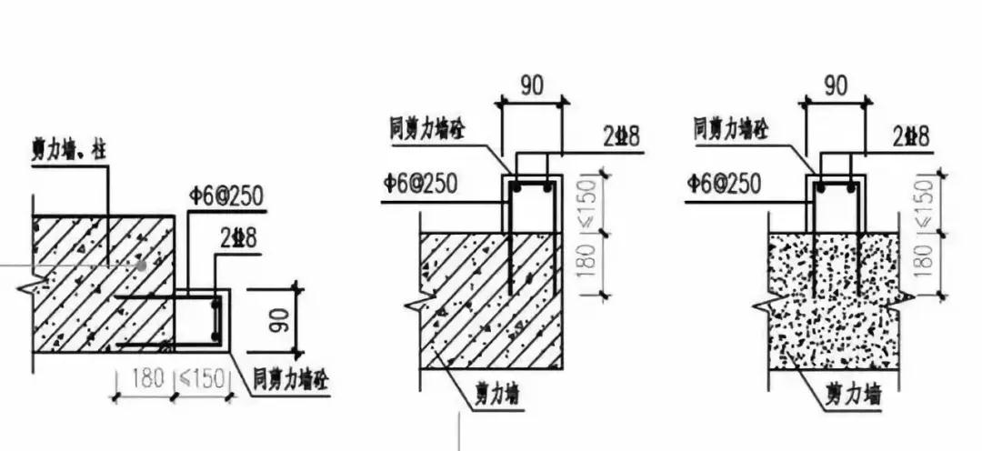 對小于150mm二次結構門垛、過梁主體施工時一次配模澆筑成型,有效防治門洞側空鼓開裂。