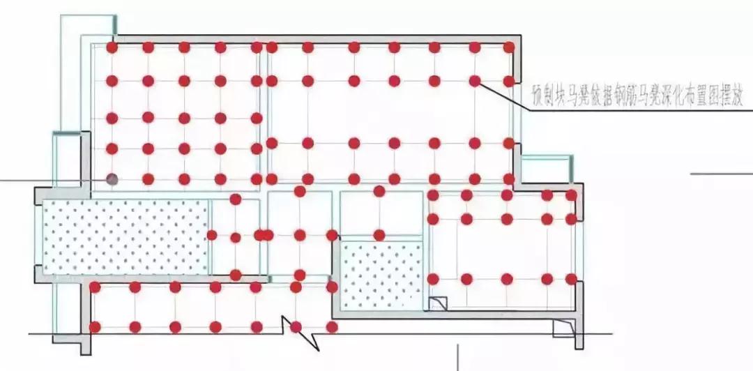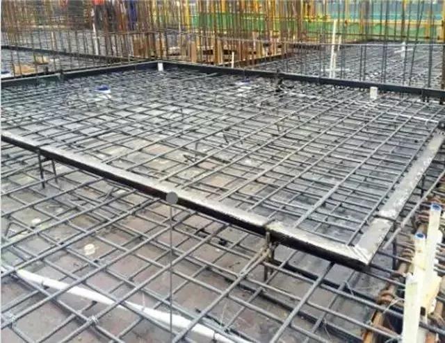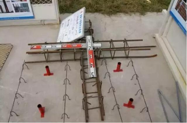 采用定型預制混凝土馬凳起到確保鋼筋保護層厚度及樓板混凝土厚度的雙重作用。