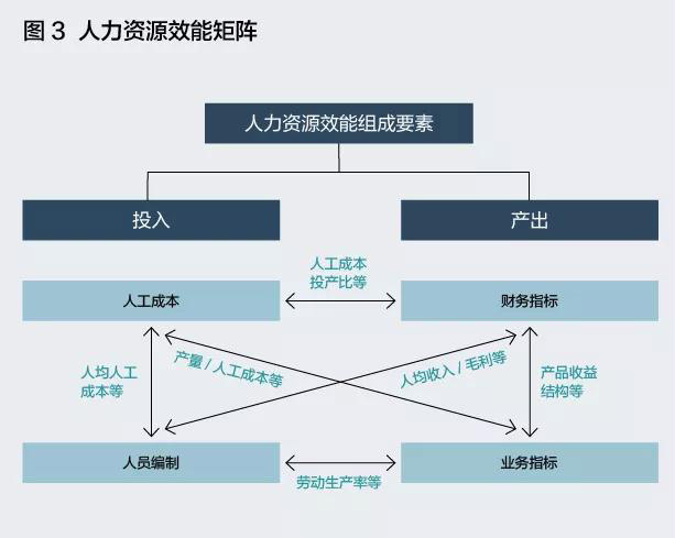 當(dāng)我們確認(rèn)了人效這個(gè)經(jīng)營坐標(biāo)之后,應(yīng)該具體關(guān)注什么指標(biāo)呢?筆者用如下的矩陣來衡量人力資源效能(如圖3):